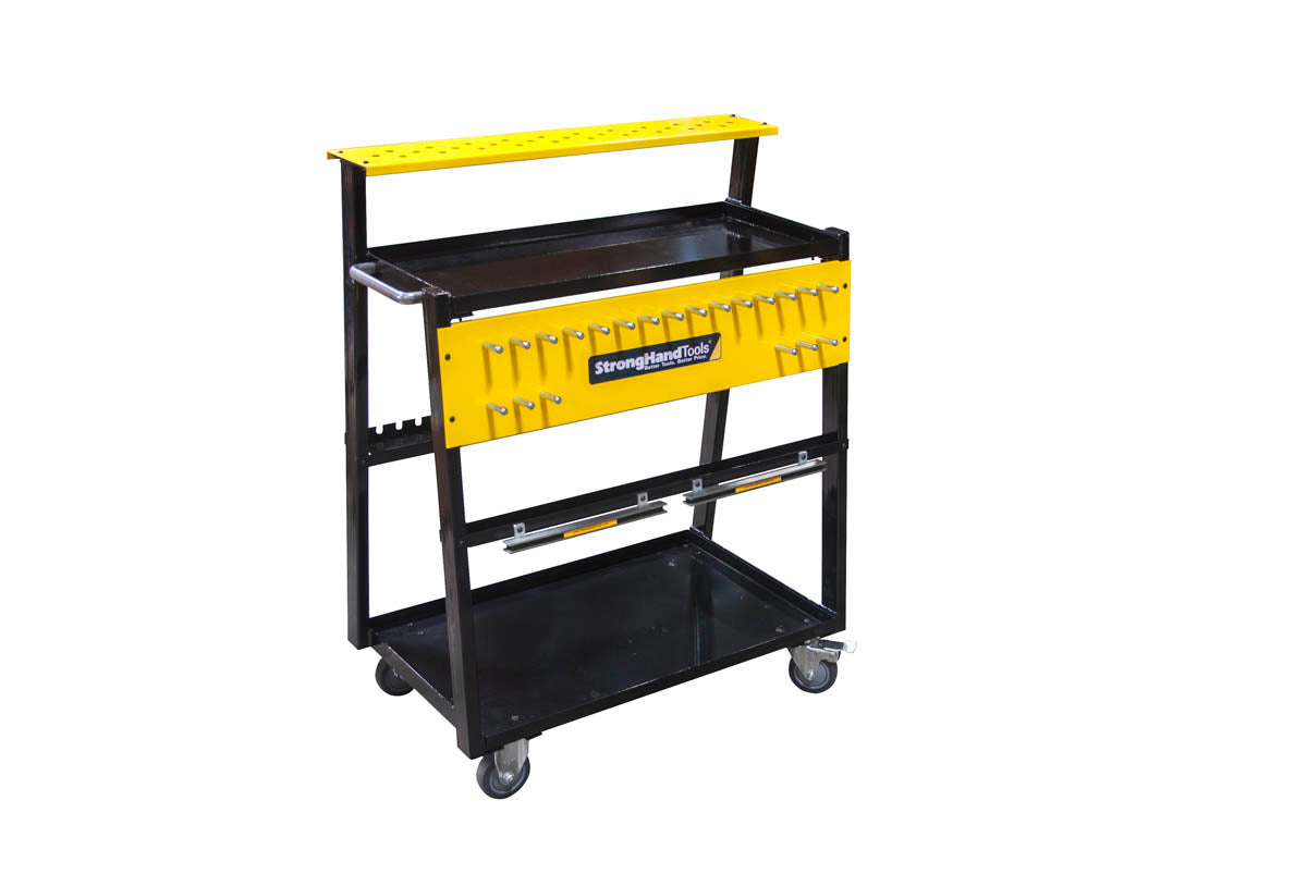 • “Fully Open” design for visibility and quick access.• Tool Organizer Plate: Dedicated placement for each clampand component. “Park and Pickup” Inserta Clamps and InsertaPliers.• Pegboard Panel: Safety pegs have rounded ends and keepStraight Edge Stops ready to grab and use.• Magnetic bars: steady Right Angle Brackets.• “Bridge” Channel: is the ideal width to hold Ball LockBolts an essential component in fixturing.• Rear Slotted Cross Bar: holds clamps and pliers.• The Bottom Shelf: holds bulky items such as HD RiserBlocks. 1-1/4? lip around the bottom shelf prevents itemsfrom falling while moving.• Two fixed casters and two swiveling casters: with footpedal safety lock provide easy maneuverability.