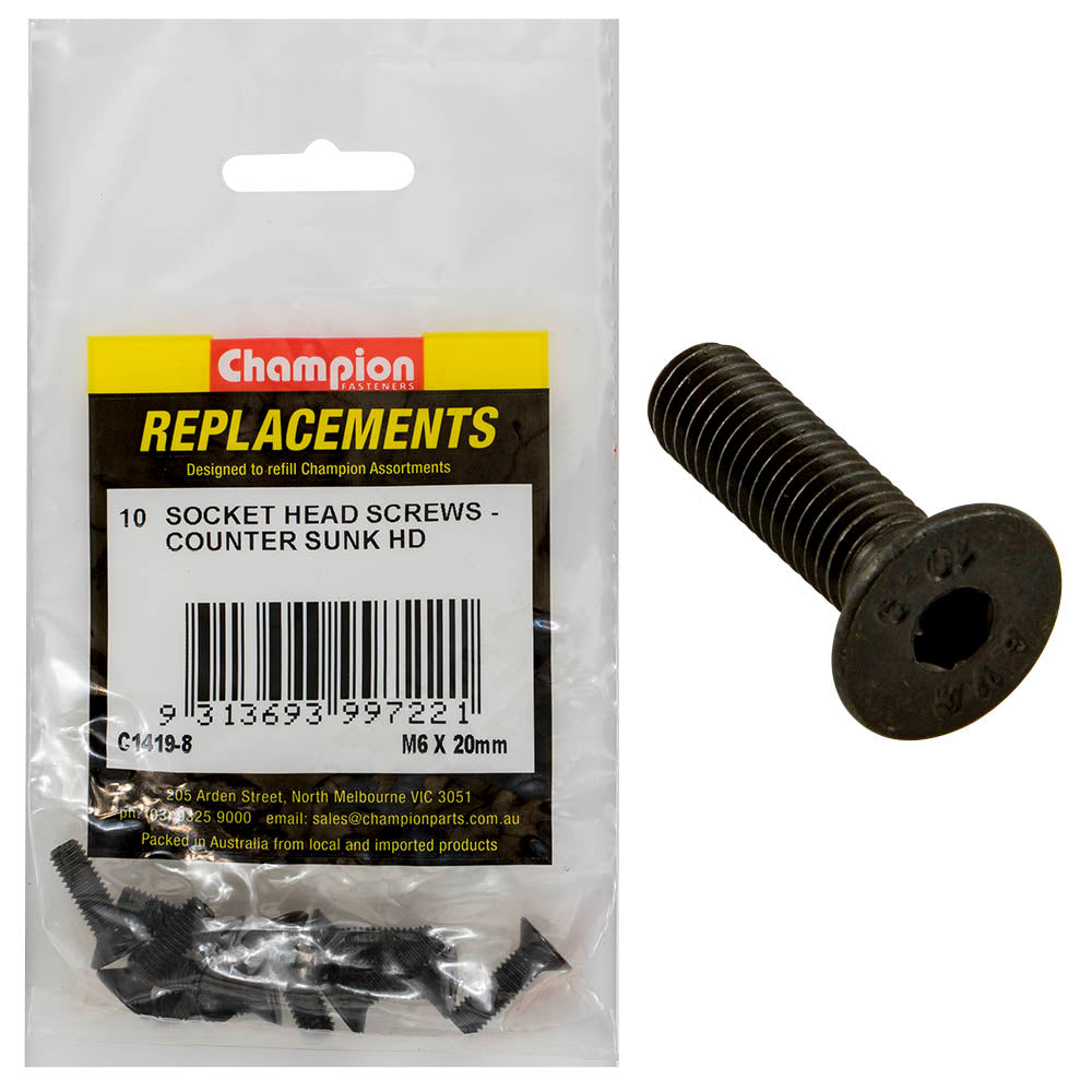 C1419-8 | Champion M6 x 20mm C/Sunk Socket Head Cap Screw-10pk