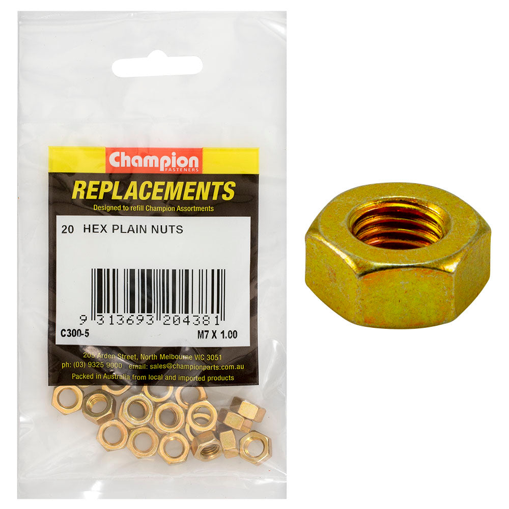 C300-5 | Champion M7 x 1.00 Plain Hex Nut -20pk