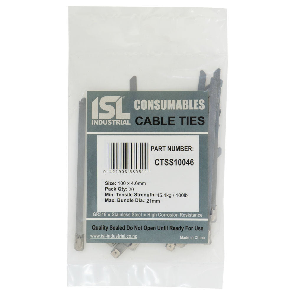 ISL 100 x 4.6mm 316 Stainless Cable Tie - 20pk