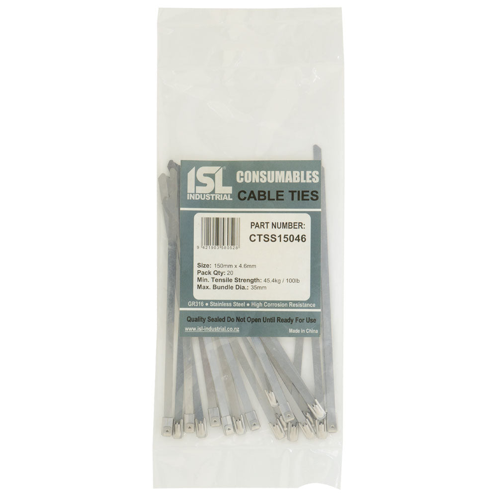 ISL 150 x 4.6mm 316 Stainless Cable Tie - 20pk