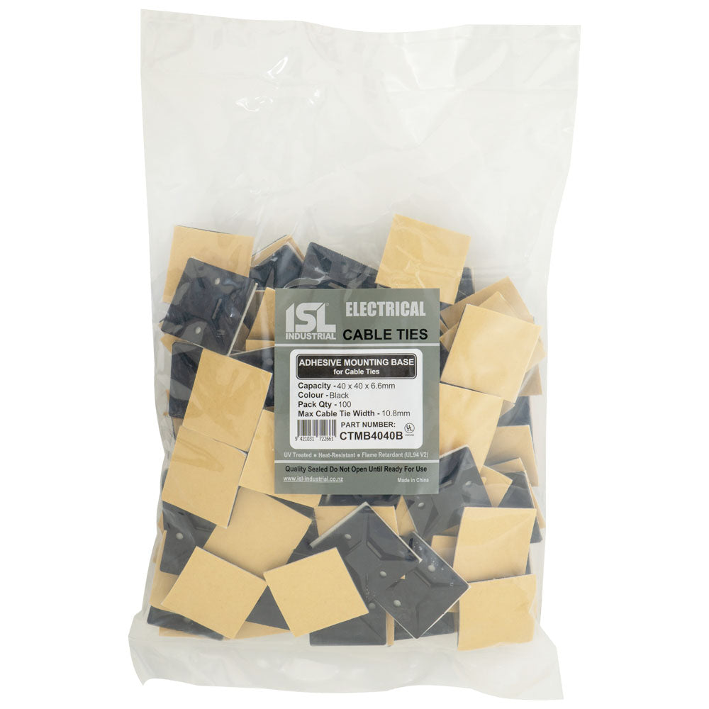 ISL 40x40mm Cable Tie mounting Base - Black - 100pk