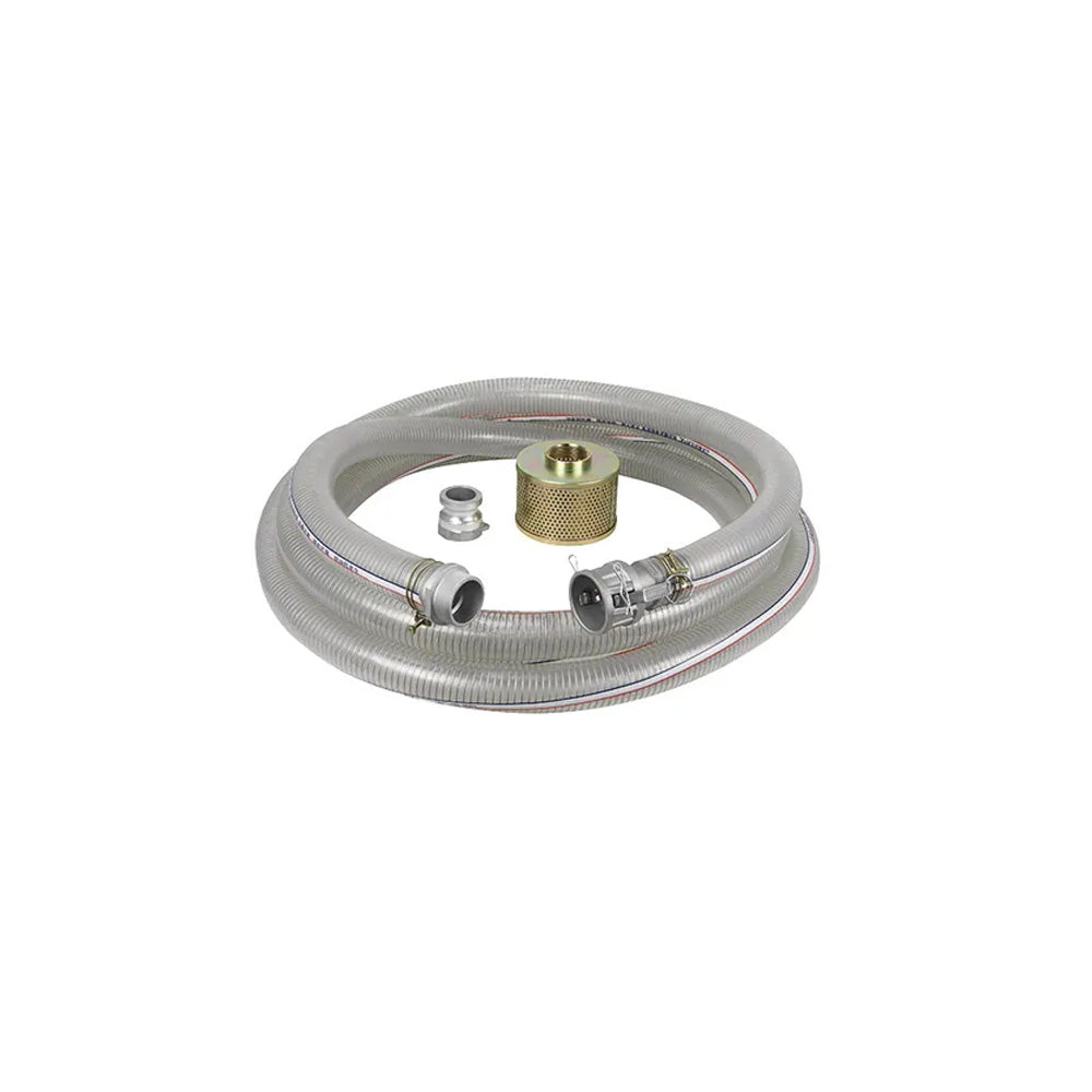 FEATURES• Reinforced clear P.V.C.• Includes quick fit camlock fittings threaded adaptor andhose clamps• Metal inlet strainer basket included• 50mm (2 ) diameter