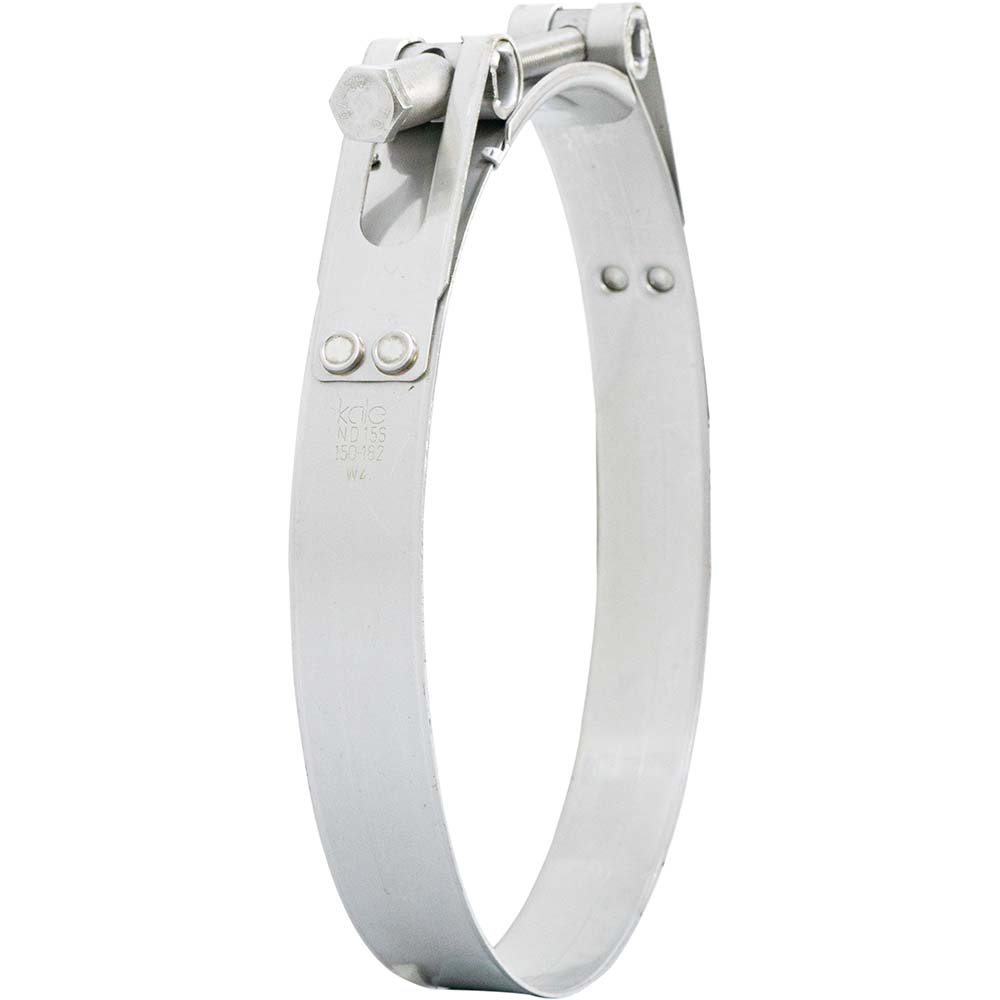 Kale HD T-Bolt clamps are manufactured utilisingTOX®-Clinching joints. A cold forming press technique thatis more than 70%stronger than welding and superior to tabstyle mechanicallocks.Produced in Europe to DIN 3017-3 standards Kale HDT-Boltclamps are suitable for high shore hardness orreinforcedhoses.
