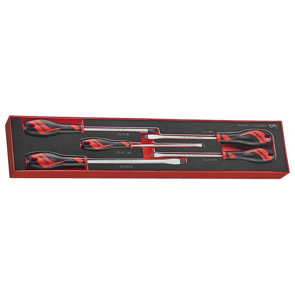 • 5 piece screwdriver set. Blades of TT-MV PLUS steel.• Two component handle with hanging hole.• Supplied in a plastic TEX tray.• Three colour EVA foam.• Fits in Teng Tools tool boxes and roller cabinets.